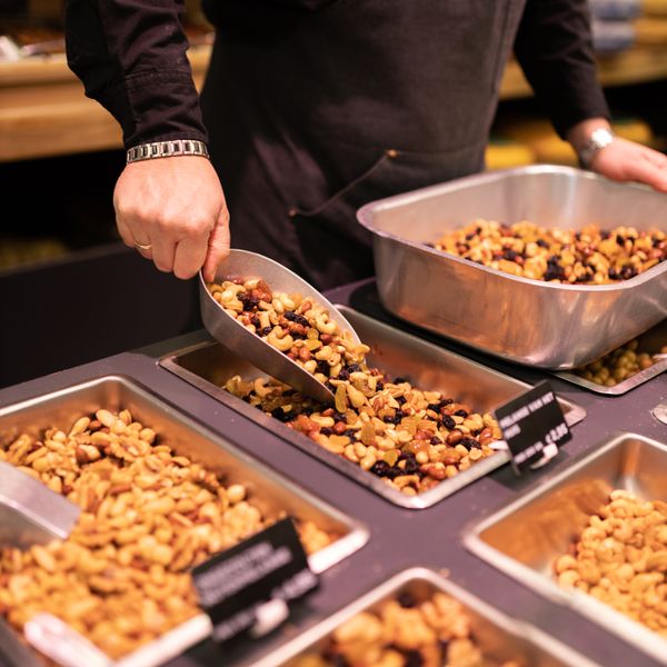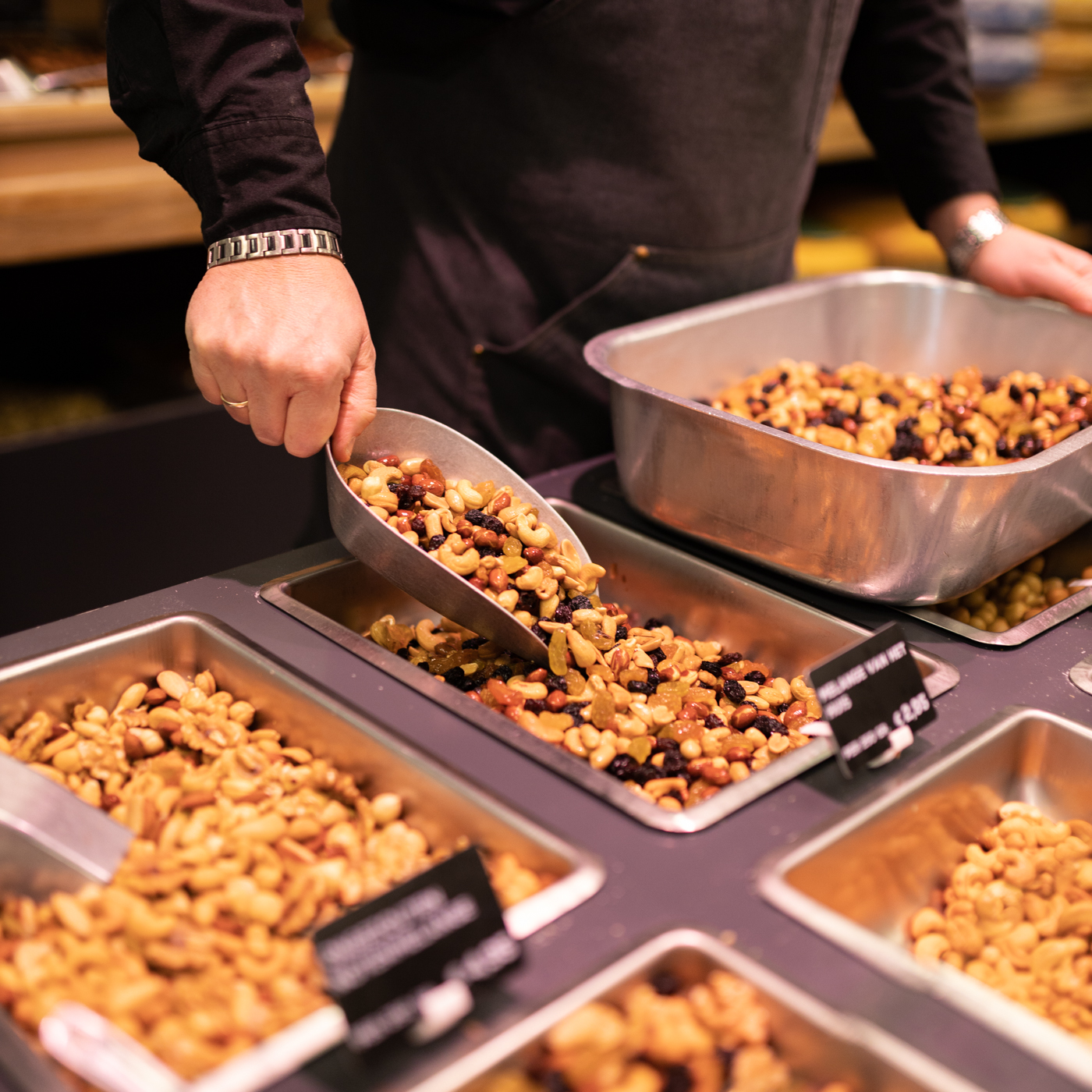 Over the years, the range of cheese and delicacies has been supplemented with various specialities. A large department with daily freshly roasted nuts, a rich assortment of artisanal chocolates, a well-stocked tapas bar, olive oil from the barrel, in short: too much to mention.
