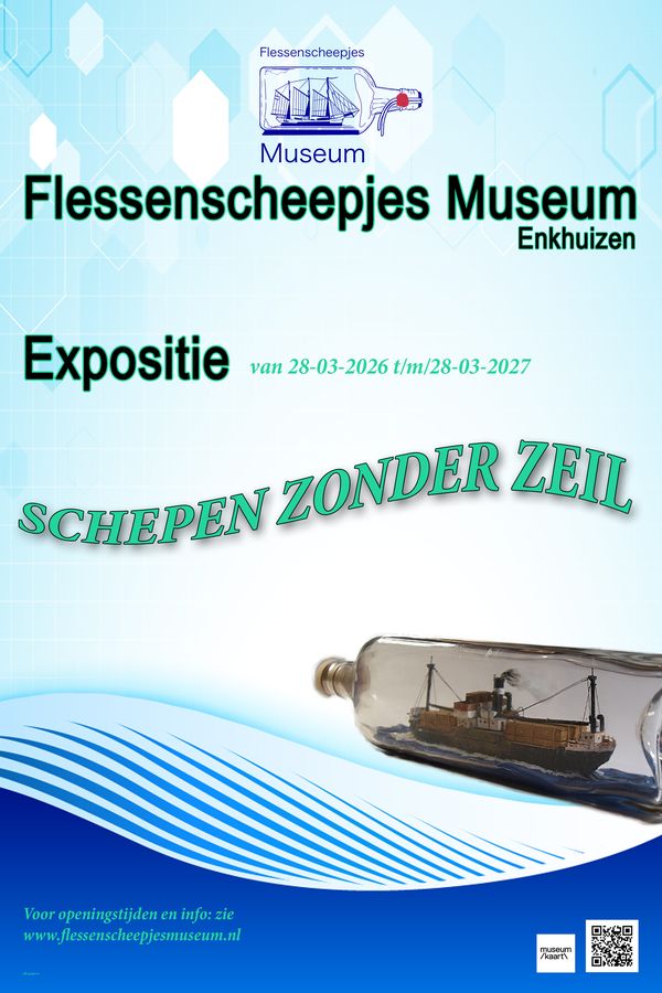 Deze en nog veel meer flessen zijn te zien van 28 maart a.s. tot 2 april 2027. Voor openingstijden zie website: www.flessenscheepjesmuseum.nl