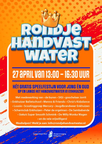 Rondje Handvastwater is al jarenlang een begrip in Enkhuizen en omstreken: een goed bezocht en gratis speelfestijn voor jong én oud op Koningsdag. He...