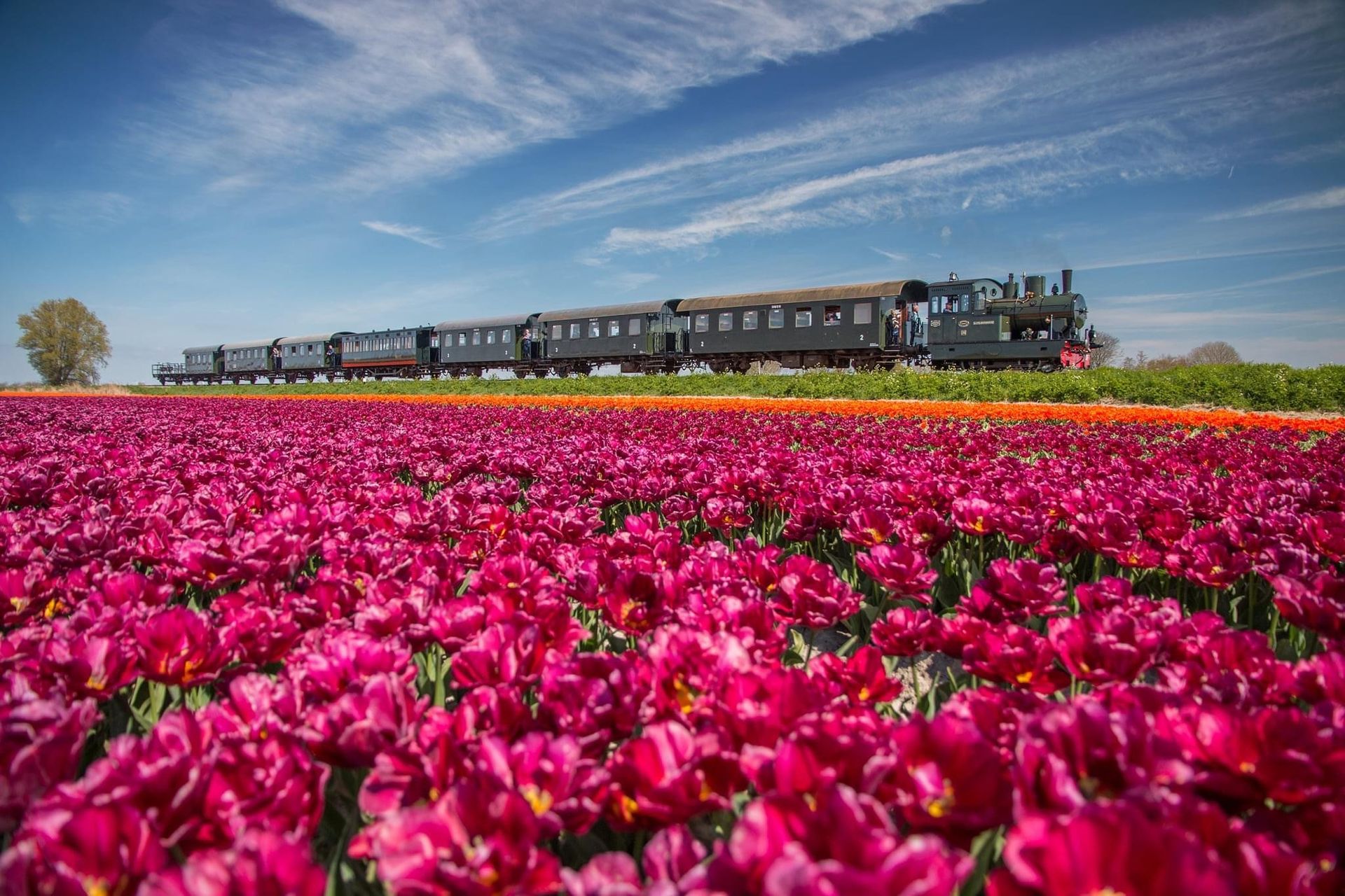 Beleef de klassieker van Museum Stoomtram in de lente van 2026! Vanaf medio april rijden de stoomtrams langs kleurrijke bollenvelden tussen Hoorn en Medemblik.